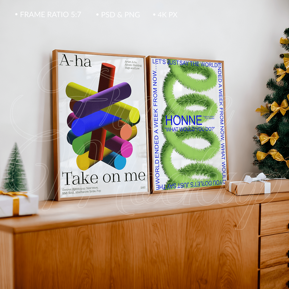 G197 Two Wooden Frames Mockup for Poster | 5x7 Ratio | Christmas